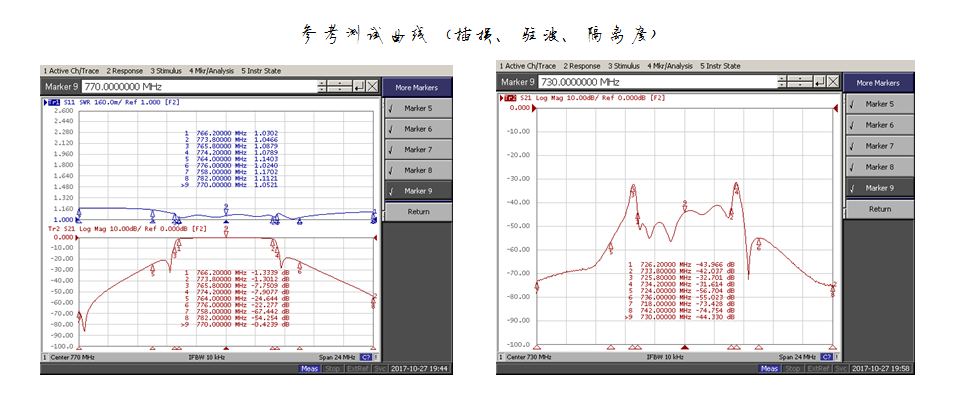 | 邊帶插損 | f0±3.8MHz ≤1.5dB(非鄰頻) ≤2.5dB(鄰頻) | |